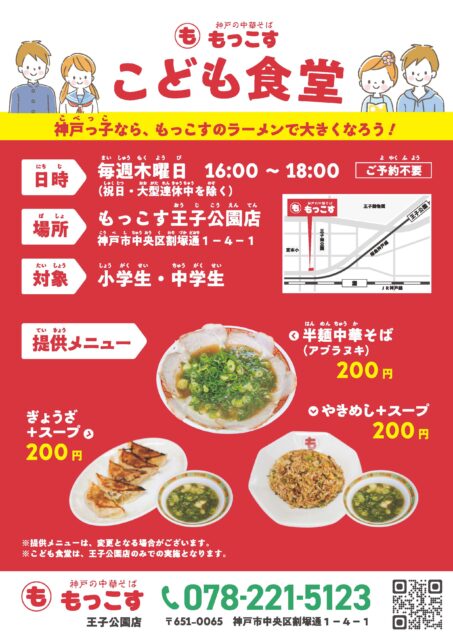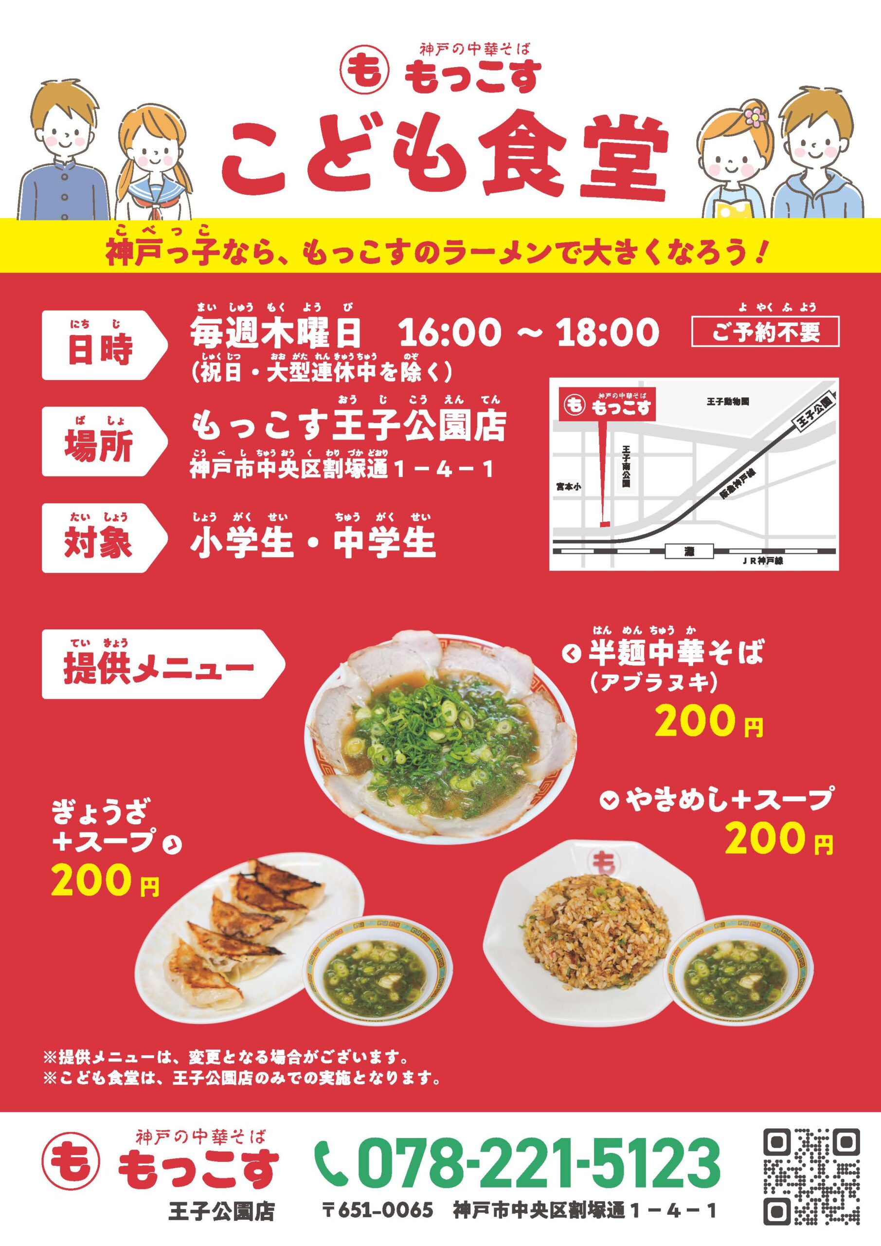こども食堂オープンのお知らせ(王子公園店のみ)